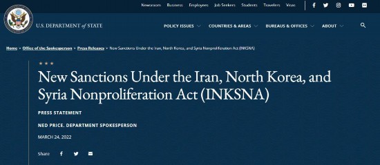美国国务院24日在其网站发布的制裁声明中宣称,“这一决定强调,所有国家都需对朝鲜和叙利亚推进其令人担忧的(武器)扩散计划的工作保持警惕。”