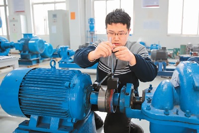 在山东水利技师学院,参赛选手参加山东省“乡村振兴杯”水利行业调水系统泵站运行工职业技能竞赛。