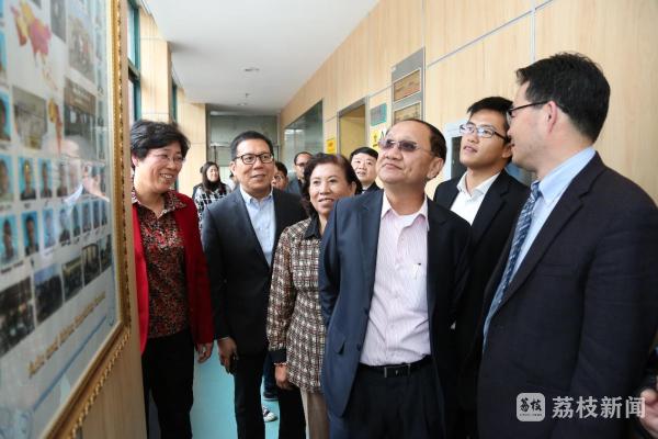 2016年3月,柬埔寨西哈努克省省长(右三)润明访问江苏省血吸虫病防治研究所,省血防研究所所长羊海涛(右一)介绍中柬热带病防控合作工作情况。