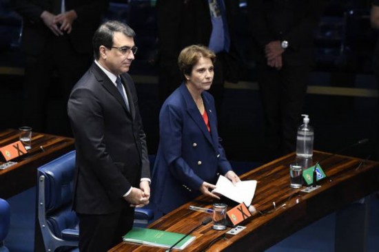 △巴西外长弗兰萨(左)和巴西农业部长克里斯蒂娜在24日的参议院全体会议上发言(图片来源:巴西国会)