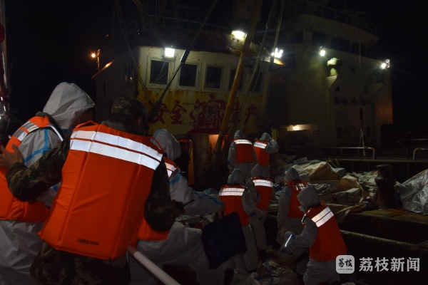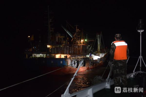 当晚,南通海警局根据前期情报线索掌握情况,指派位于启东吕四港附近海域执行海上疫情防控任务的巡逻艇前往目标海域进行查缉。经过不间断搜索,海警人员在目标海域发现了3艘可疑船舶。为避免打草惊蛇,海警人员第一时间关闭了舰艇灯光,在夜色掩护下慢慢靠近目标位置。22时许,巡逻艇强行靠帮登临控制三艘嫌疑船舶,现场控制20名涉案人员。