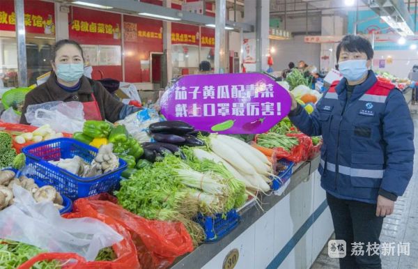 一位市民在选购蔬菜时,看到标语笑了笑:“有点意思的。”并不由自主地压紧了口罩的鼻夹。