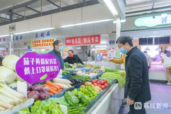 为了营造农贸市场的防疫宣传氛围,江阴市澄江街道先锋社区想出了“金点子”,别出心裁地盯上了群众的“菜篮子”。