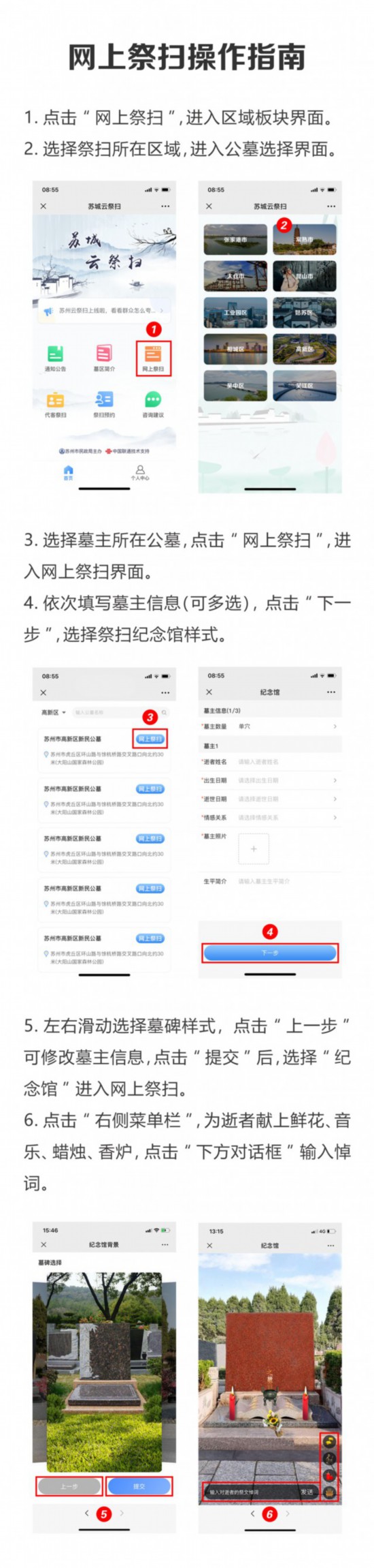 记者从苏州市民政局了解到,疫情防控期间,全市暂停现场祭扫活动,市民可选择“苏城云祭扫”公益信息平台和11个殡葬服务机构自建信息平台,以网上祭扫的形式缅怀先人。