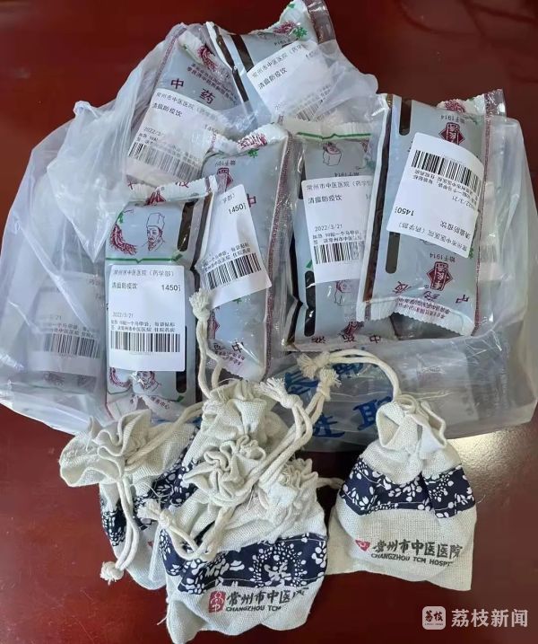 常州市中医医院还为一线人员送去香囊和中药汤剂,增强他们的免疫力。医院药学部主任华丰说:“为了充分发挥中医药在疫情防控中的重要作用,常州市中医医院为黄码医院的人员、外出采样的人员以及本院值守人员送出了防疫饮品1万多袋、防疫香囊5千多袋、清肺排毒汤5千多袋。”