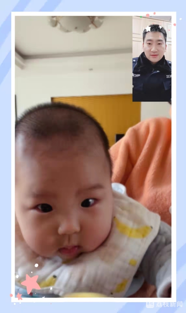 沈忱是新手爸爸,更是多次支援防疫一线的青年民警。他白天是“暖心警官”,支援重点社区,维持核酸检测秩序,晚上是“数据达人”,在电脑面前加班,做好统计分析。他的宝宝刚过百天,每天只能通过视频以解思念。“宝宝出生前,我们说好要陪伴他成长,可是宝宝出生后,我却总是缺席。这张珍贵的截图我要好好保存,等宝宝长大后,跟他讲讲我们现在经历的这段特殊时期”。