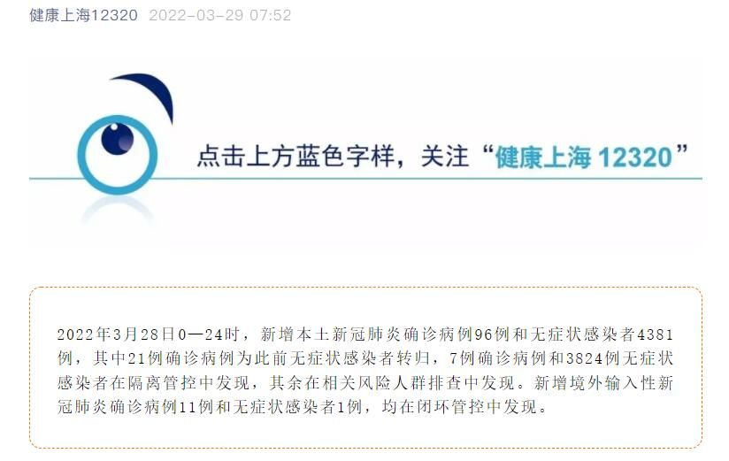 2022年3月28日0—24时,上海新增境外输入无症状感染者1例。