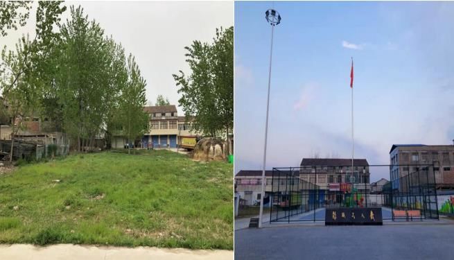 淮河村篮球场建设前后对比图