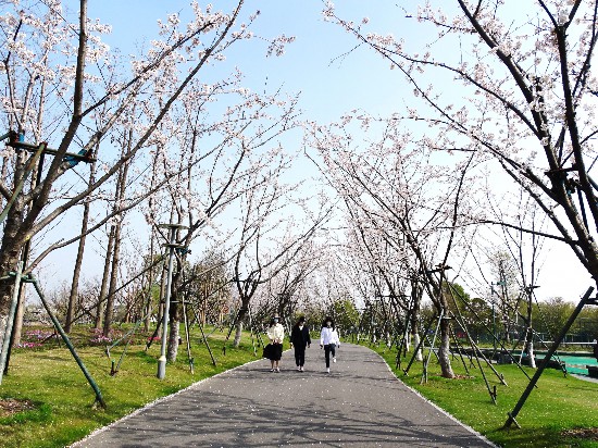 这条樱花大道从凌波桥一直延伸到城市书房,这里的染井吉野樱已进入盛花期。这条樱花大道,前后长1公里左右,盛开的樱花令人陶醉。在这条樱花大道上一路行走,不仅可以欣赏到迷人的樱花,运河三湾风景区的各种美景更是步移景换,凌波桥、津山远眺,古运河、河面帆船,延绵芦苇,沿岸杨柳,还有远处的中国大运河博物馆和剪影桥……樱花烂漫下的三湾公园,美不胜收。