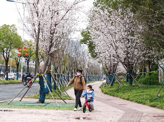 扬城最早建成、知名度最高的樱花大道,莫过于鉴真大道。今年由于防控疫情的需要,鉴真大道实施临时交通管控,市民纷纷选择“云赏花”。