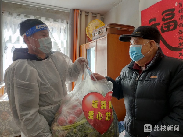 家住振东社区繁荣路的101岁老人杨庆余,子女不在身边,平时由60多岁的保姆照顾,因为自己和保姆年龄都大了,不太会用手机买菜,最近全靠社区和志愿者帮忙。“真是谢谢你们。”当天拿到板浦镇送来的免费蔬菜后,老人非常高兴。