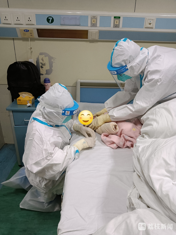 凌晨三点多,常州市儿童医院新生儿科副主任华国伟、护士长黄颖兰已经穿好防护装备,进入负压病房支援救治。经过治疗,目前小宝贝体温正常、病情平稳。虽然仍在负压病房隔离治疗,但除了自己的妈妈,他还有这么多“妈妈们”的关心和照顾,俨然成了病房里的小团宠。“妈妈们”都说,有我们在,小宝贝一定能很快恢复健康、平安出院回家。