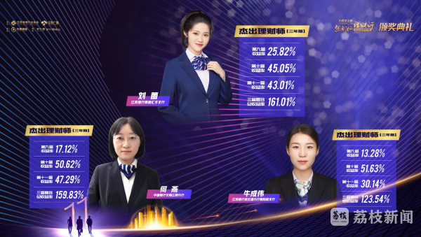 一批优秀理财师凭借在连续多届大赛中的出色业绩,证明了自身深厚的技术积累和成熟的投资理念。去年比赛中,农业银行李为影、中国银行何燕等10位理财师凭借连续两届大赛的领先态势,获得了两年期杰出理财师奖,复合收益率均超过100%。江苏银行刘蕾更是在连续三届大赛的模拟投资中,获得了161.01%模拟投资收益。
