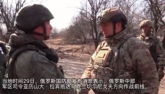 当地时间29日,俄罗斯国防部发布消息表示,俄罗斯中部军区司令亚历山大·拉宾抵达乌克兰切尔尼戈夫方向作战前线。
