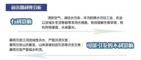 从对农业的影响来看,前汛期期间,长江中下游地区、华南北部正处于油菜开花后期,有关部门和农户要注意田间管理,及时排水,设施农业要注意防风。