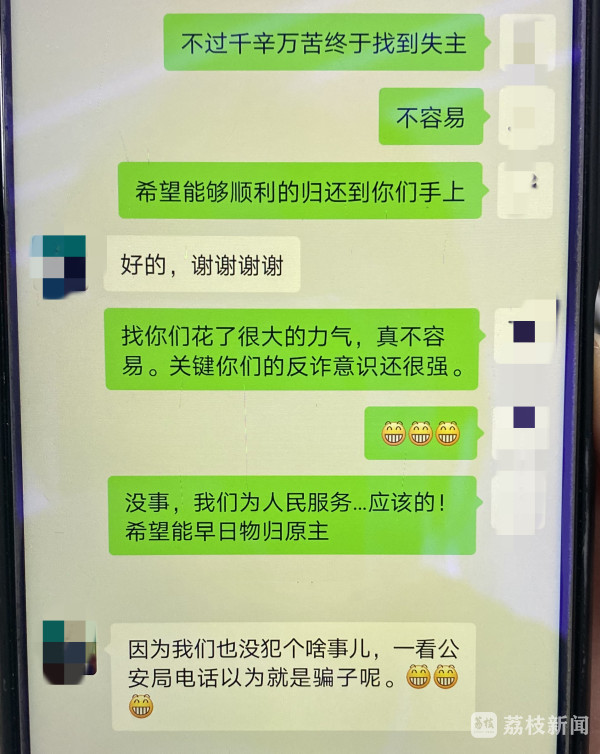 了解情况后,值班民警戴俊杰猜想,可能是上一位买家打算去存钱,一不小心先将装有钱的包给退了货,恰好被下单的李女士收到了。情况紧急,戴俊杰根据存折和身份证的信息,很快就联系上了远在内蒙古的失主杨女士。