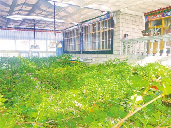 图⑦:拉萨一户居民家的葡萄树,长势喜人、片片翠绿。