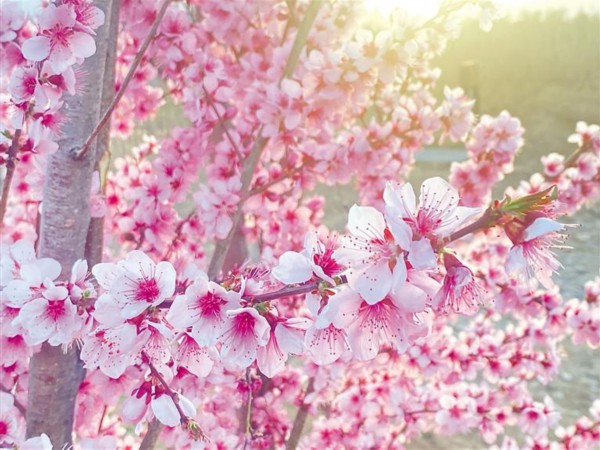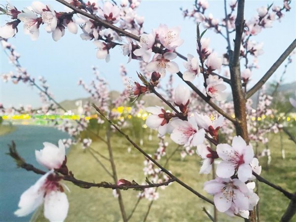 图③、图④:拉萨市中华文化公园里盛开的桃花。