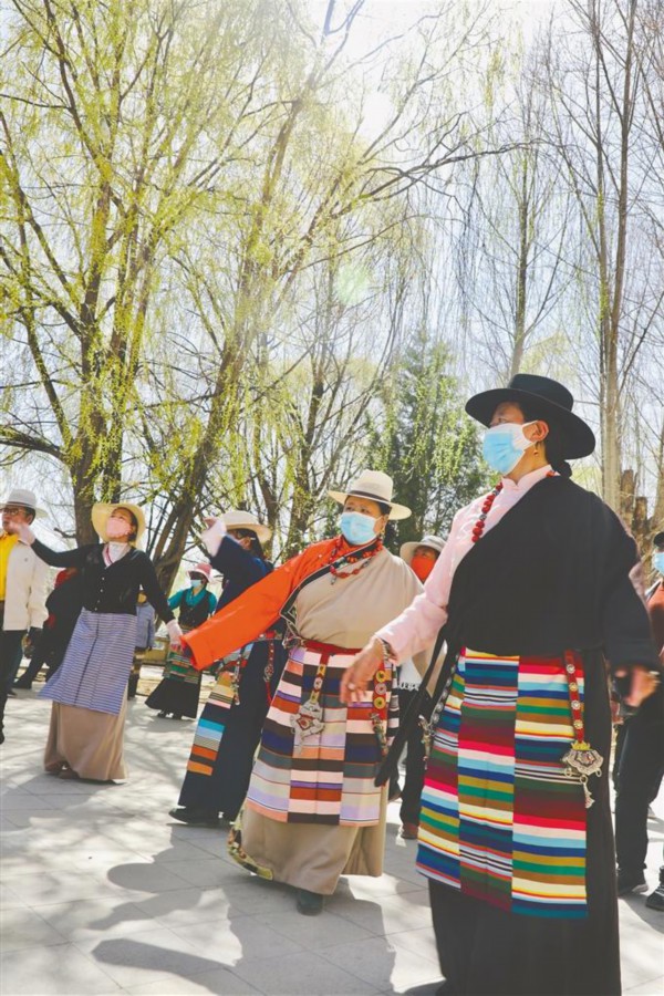 图②:拉萨水上公园里跳舞的市民。