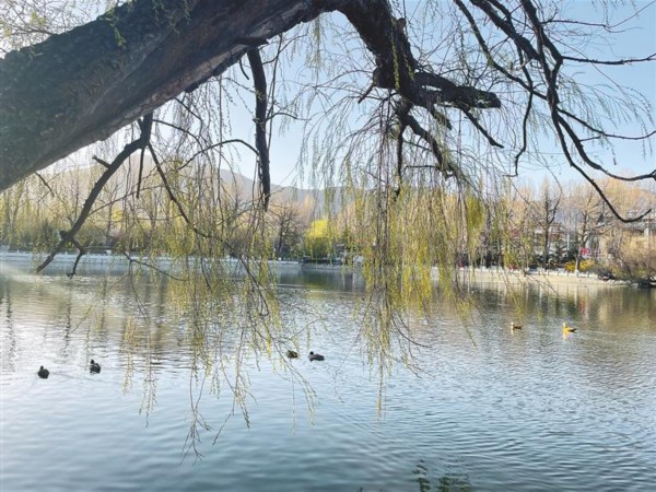 在太阳岛,在东郊和西郊,走在有水的河边,如果你能够蹲下身细细盯着某一处草地,就会发现前一年的枯草深处,已经有慵懒的草儿醒来,悄悄冒出芽尖;哪怕你走在足音起伏、车水马龙的北京路、金珠东路等大街上,或者走在布达拉宫广场和宗角禄康公园里,也可以从那些看上去仍旧板着脸的树木上,发现隐约的春意!