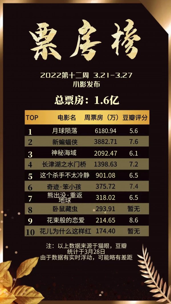 一周票房榜- 2022第12周 -(3.21-3.27)
