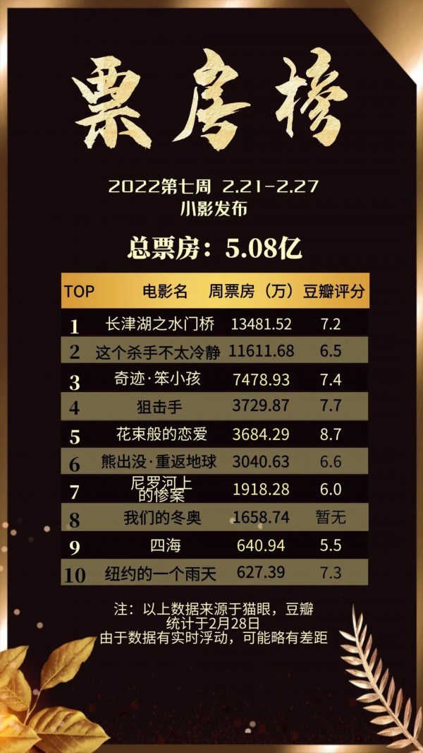 一周票房榜- 2022第8周 -(2.21-2.27)