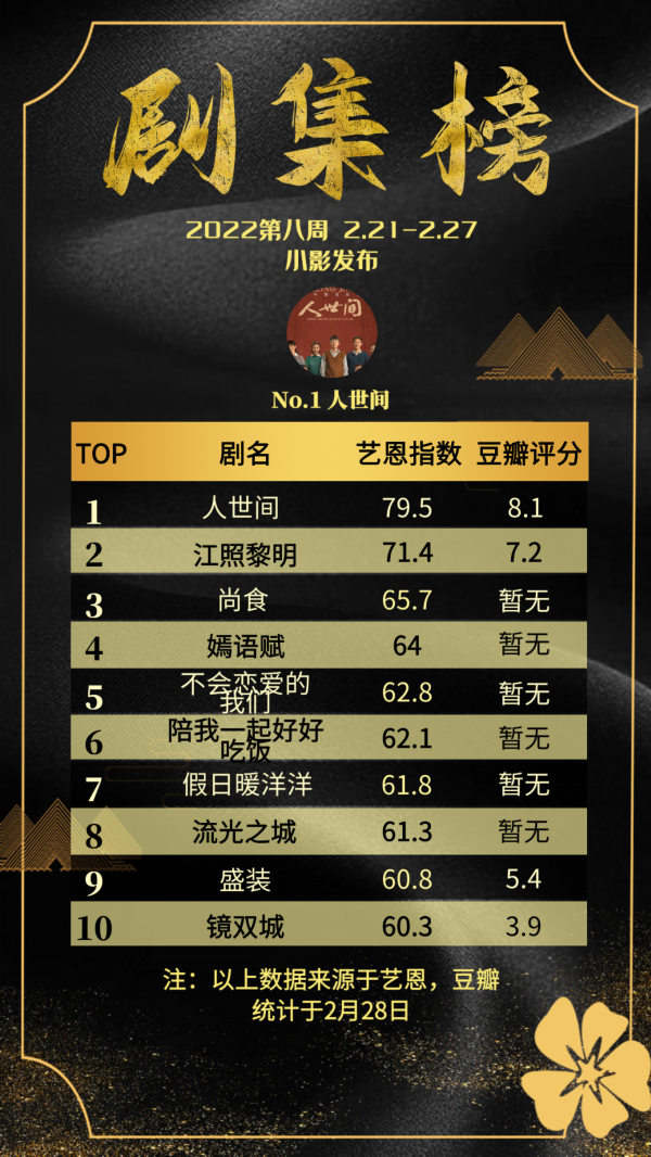 本周共有27部首轮剧在播,进入榜单前十的剧集,目前已会员收官或即将收官。正在江苏卫视幸福剧场热播的《人世间》,无论是口碑还是热度都扶摇直上,本周继续蝉联周榜冠军。