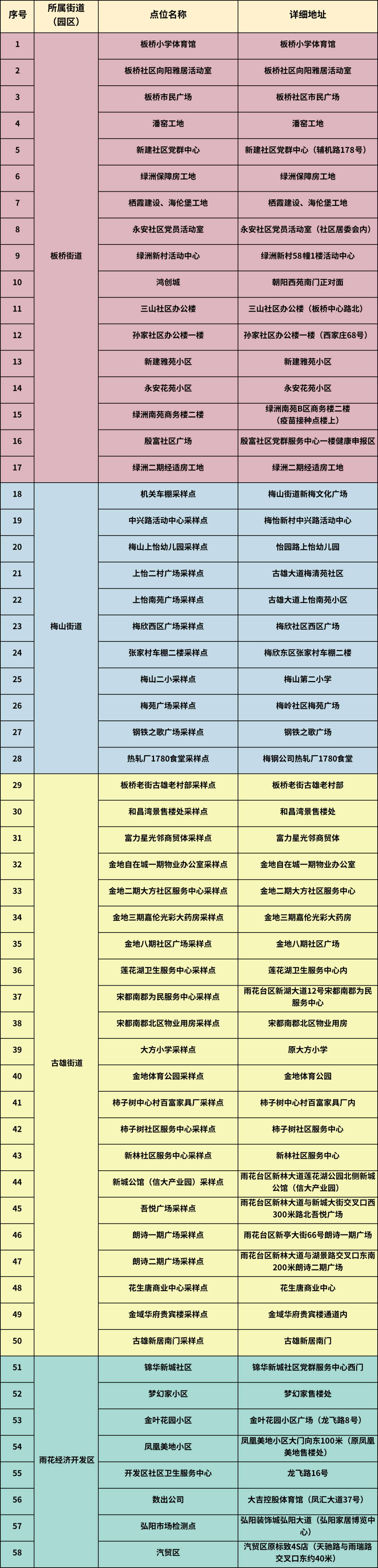 雨花经济开发区核酸检测采样点信息