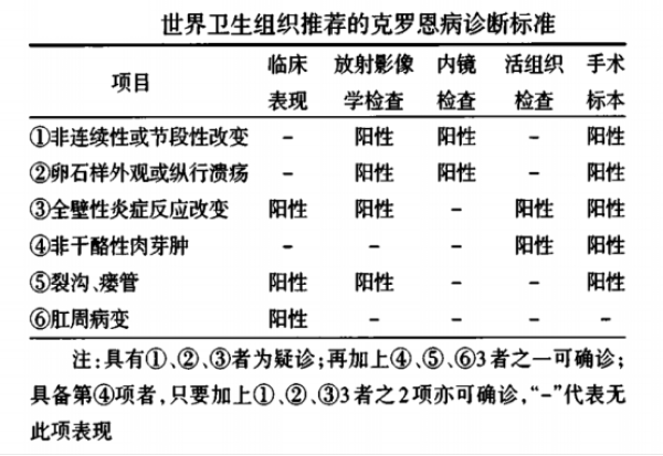 世界卫生组织曾提出6个诊断要点的克罗恩病诊断标准,该标准最近再次被世界胃肠组织(WGO)推荐,可供参考: