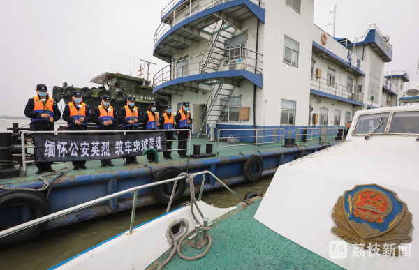 2022年3月31日,长江航运公安局镇江分局联合镇江出入境边防检查站民警开展“致敬•缅怀•奋进”主题活动,通过宣讲英烈事迹、默哀、重温入警誓词等方式,缅怀祭奠公安英烈,进一步凝聚警心、激励斗志,鼓舞全体民警,坚决筑牢水域疫情防控屏障。