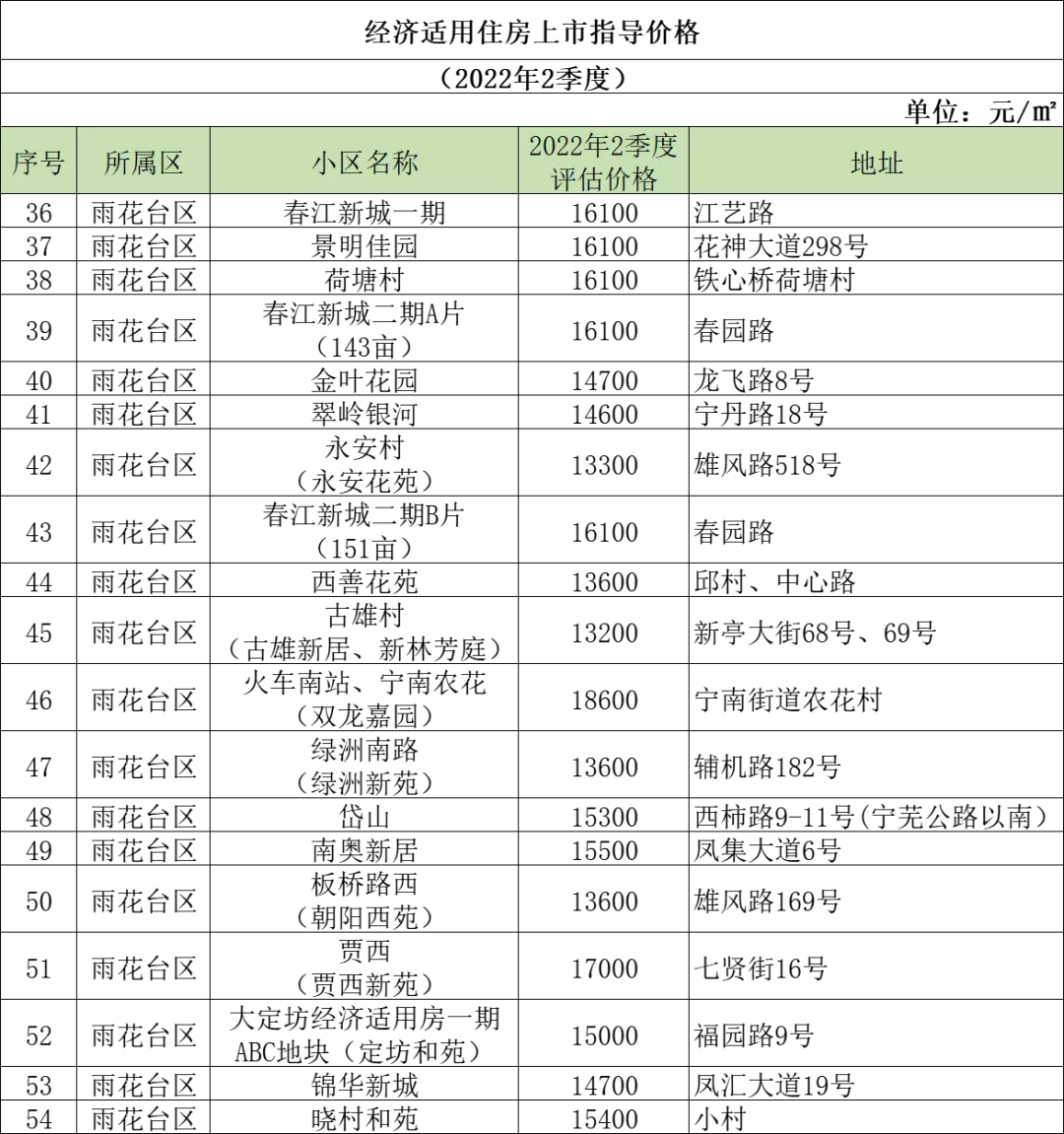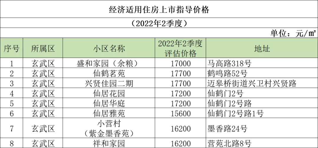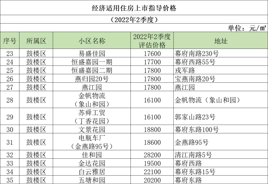 扬子晚报网讯(记者 马祚波)南京市住房保障和房产局近期公布了2022年第二季度经济适用房的上市指导价,记者发现,跟一季度相比,大多数小区的指导价有所上浮,其中指导价最高的是鼓楼区佳和园,单价为28200元/㎡,较一季度上涨1500元/㎡。