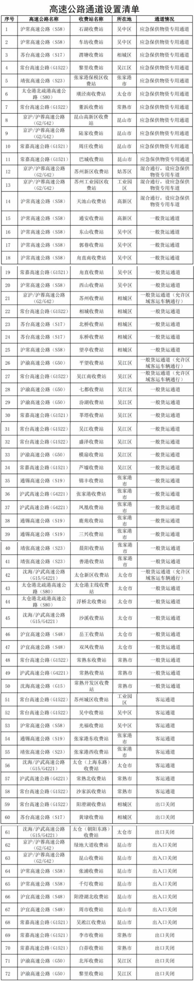 为统筹做好疫情防控和物流保畅工作,现就进入苏州的高速公路通道调整事宜通告如下: