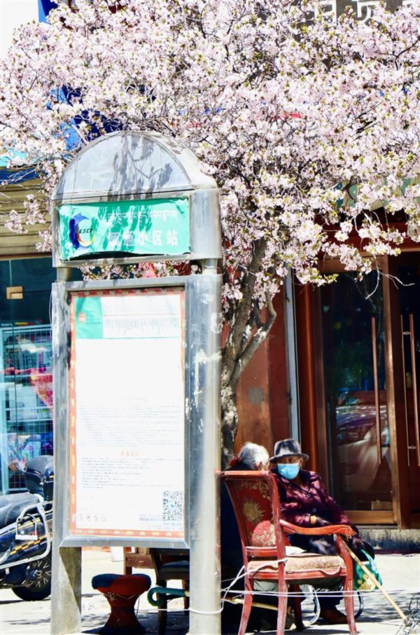 住在拉萨靠北边的市民同样能一饱眼福。娘热北路两侧的榆叶梅已全部绽放,而紧邻娘热路的慈松塘中路和慈松塘东路更是一片春花烂漫的美好景象。慈松塘中路和北路的榆叶梅栽种较为密集,成团成簇的淡粉色花朵挤在枝头,树下乘凉的老奶奶、树边停靠的公交车,在花朵的加持下,随手一拍便是故事感极强的画面。