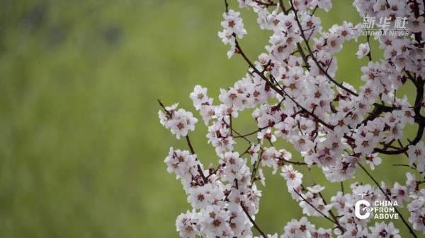眼下,桃花开得正盛,漫山遍野的桃花将这里变为一个海拔高度近3000米的“世外桃源”。