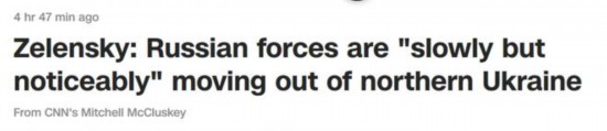 而在泽连斯基作出此番表态前,CNN1日发布消息称,卫星图像显示,俄罗斯军队从基辅郊外的安东诺夫机场撤出。CNN称,“俄罗斯人从基辅附近的一关键机场撤出”。