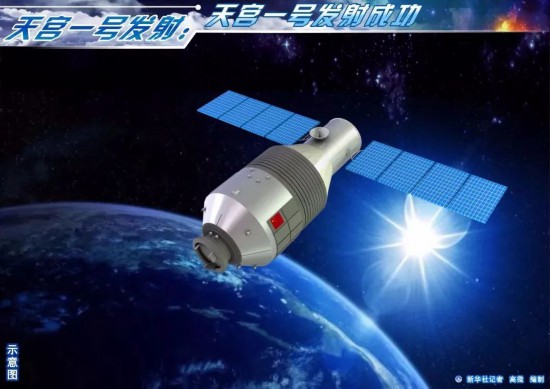 2011年9月29日,中国在酒泉卫星发射中心用长征二号F运载火箭将天宫一号目标飞行器发射升空。(来源:新华社)