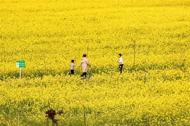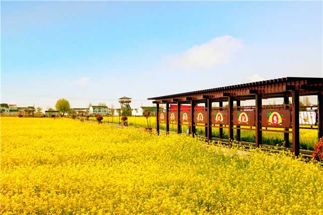眼下到联庆村,可欣赏金黄的油菜花田。若是金秋时节,则可饱览风吹稻浪的壮观景象。随手一拍,都是美景。