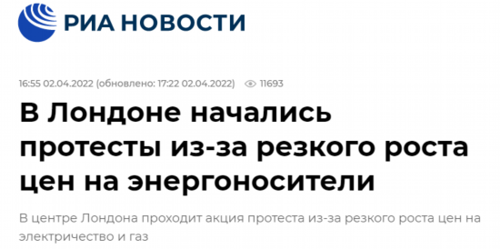 (俄新社:能源价格大幅上涨,伦敦开始抗议活动)