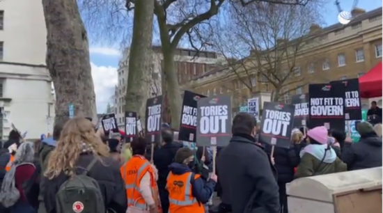 据俄新社4月2日最新报道,由于电力和燃气价格大幅上涨,英国伦敦市中心当天爆发反政府抗议活动,抗议者聚集在唐宁街的首相府对面,要求英国首相约翰逊和保守党政府下台。