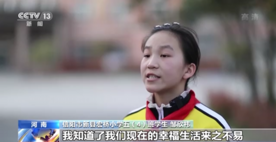 河南省信阳市新县宏桥小学五(4)班学生 邹欣祎:通过今天老师的班会,我知道了我们现在的幸福生活来之不易,是那些烈士他们抛头颅洒热血才换来的,我们应该好好珍惜,好好学习,为祖国贡献自己的一份力量。