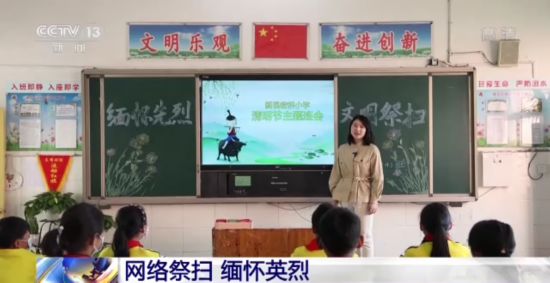 在江西省吉安市,孩子们在多媒体教室通过观看视频、浏览网页等方式,了解英烈们的英雄事迹,感受英烈们的精神品质,在线为英烈们敬献花圈,缅怀英烈们的丰功伟绩。
