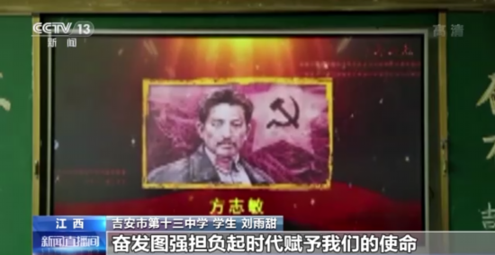 江西省吉安市第十三中学学生 刘雨甜:我想对先烈们说,山河已无恙,吾辈当自强。请你们放心。我们一定会继承你们的遗志,奋发图强,担负起时代赋予我们的使命。
