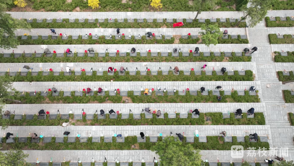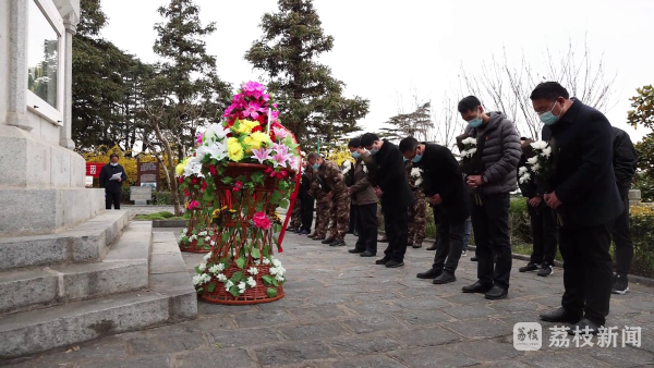 在抗日山烈士陵园,赣榆区退役军人事务局及抗日山文旅产业园组织部分烈士亲属代表、退役老战士代表和陵园工作人员,现场为烈士墓敬献鲜花、擦拭墓碑,活动通过网络直播地方式将祭奠现场全程呈现给观众,在全社会传播崇尚、缅怀、学习英烈的浓厚氛围。烈士亲属代表李其进说:“我的伯父叫李大民,他是1948年参加淮海战役期间打碾庄时牺牲的,牺牲以后就埋葬在抗日山这里,今天有幸能作为烈士家属代表参加这样一个网上祭扫的活动。”