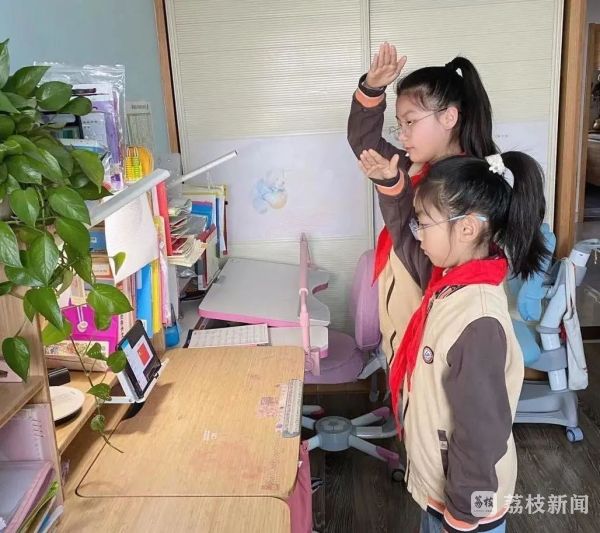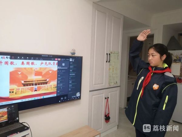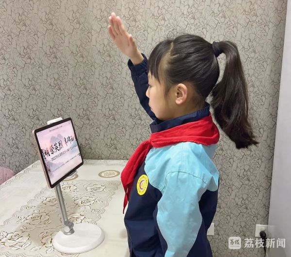 在南京市江北新区少工委的组织号召下,该区少先队员穿着整洁的校服,相聚在屏幕前,共同举行线上升旗仪式。仪式在庄严肃穆的氛围中徐徐推进,伴随着雄壮的国歌,队员们以少先队最高礼仪向鲜艳的国旗敬礼,共同在国旗下缅怀革命先烈,致敬英雄先辈。