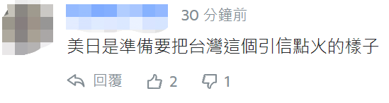 也网友连美国一起斥责:“美日是准备要把台湾这个引信点火的样子”。↓