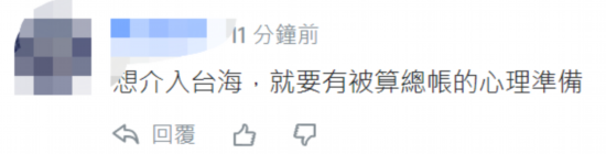 另有网友警告说,“想介入台海,就要有被算总账的心理准备”。↓