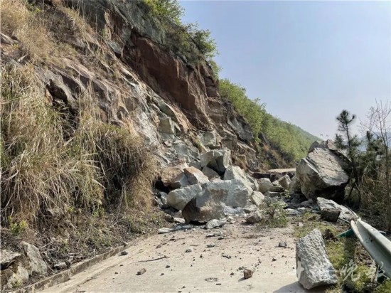 滑坡发生后,张湾区交通运输局第一时间赶至现场。然而由于滑坡处山体还不稳定,不具备施工条件,所以交通部门一边观察,一边采取了设置绕行标志等相关措施。