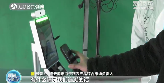 连云港市海宁路农产品综合市场负责人桂贯成说:“也便于我们定位和信息采集,进入我们市场以后,有什么事的话就方便很多,大数据也方便采集。”