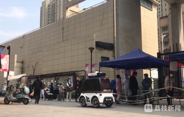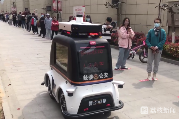 徐州市公安局鼓楼分局党委书记、局长刘勇昊介绍说:“警用无人巡逻车在核酸检测点‘执勤’,进行路面巡查、警告宣传、隔空喊话、维持秩序等工作,这不仅有效节约了人力,分担了执勤工作任务,也有助于降低交叉感染的风险,真正做到‘隔而不离’。通过‘人力+智控’,以科技支撑防疫需要,智慧抗疫、科技抗疫,实现为防疫工作增效减负,构筑防疫‘智慧防线’”。