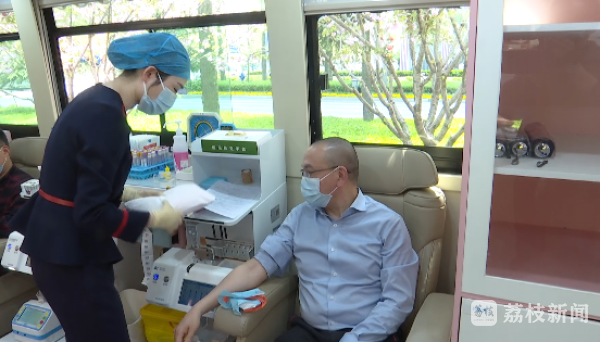 今年年后,受疫情的影响,献血的人数有所下降,江苏省血液中心的库存也较为紧张。今天(4月6日),作为江苏省血液中心的形象大使,江苏省广播电视总台的主持人大林带领同事们,一起“组团”无偿献血了。